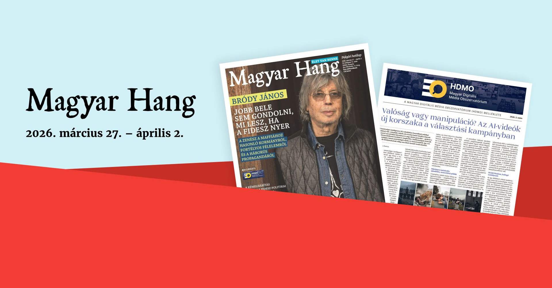Március 27-től, péntektől elérhető a Magyar Hang legújabb, 2026/13. száma, amelyhez HDMO-melléklet tartozik. A független közéleti hetilap kapható az üzletekben, de digitális formátumban is előfizethetnek rá, így akár az otthonuk kényelméből is hozzáférhetnek a tartalomhoz.