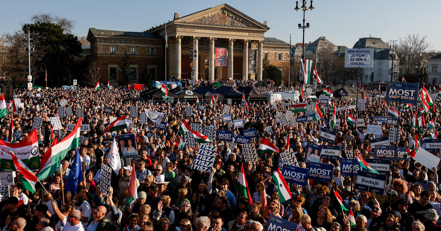 Tömegbecslés: Majdnem háromszor annyian hallgatták Magyar Pétert, mint Orbán Viktort március 15-én