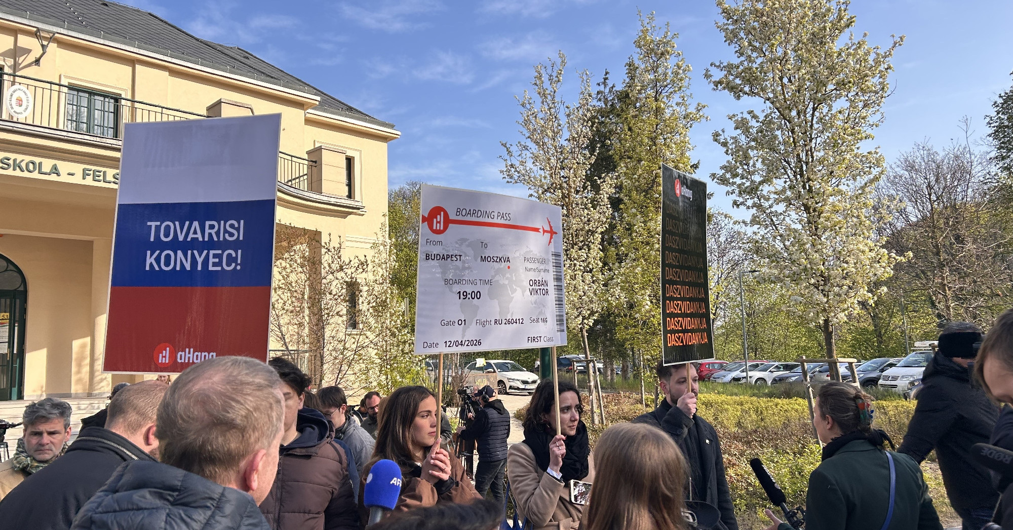 2026. április 12-én Kocsis Máté, a Fidesz frakcióvezetője, felháborodottan nyilatkozott, miután a szavazás napján a aHang aktivistái provokatív módon demonstráltak. Az akció központjába került szlogen egy repülőjegy Moszkvába, valamint a “Daszvidanyja” feliratú plakát volt, amelyet a miniszterelnök, Orbán Viktor szavazóhelyiségénél mutattak fel.