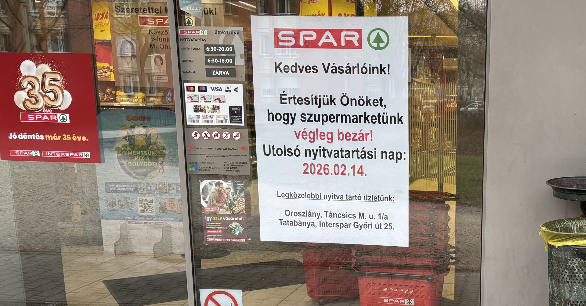 Bezárni kényszerült Spar áruház Oroszlányban